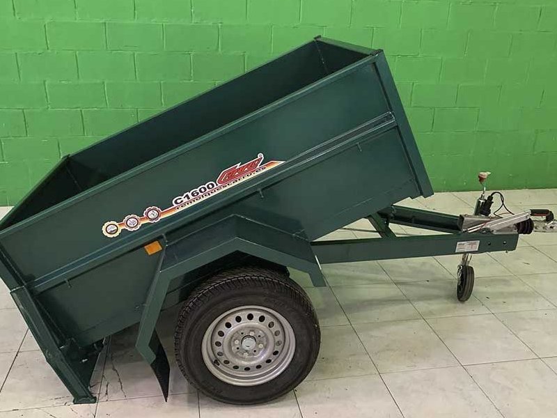 C16001E REMOLQUE PARA CARGA. BASCULANTE MANUAL. SIN FRENO. MEDIDAS INTERIORES DE CAJA: 1560X1150X520 MM. 1 EJE DE 1000 KGS. SIN FRENO. 2 RUEDAS DE 13? (NO INCLUYE RUEDA DE REPUESTO), PINTADO. BASCULANTE MANUAL. IDEAL PARA TRANSPORTE DE ACEITUNA, UVA, LEñA Y CARGAS A GRANEL, ASí COMO PARA CONSTRUCCIóN Y DIFERENTES TRABAJOS.